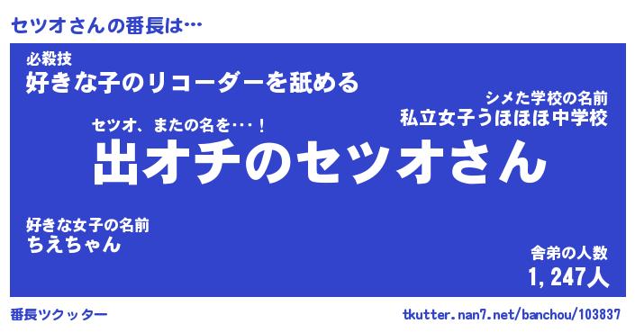 | 肩書あだ名 | 『セツオ社長』『セツオ国家主席』 |