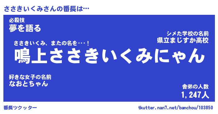 | 伝説のあだ名 | 『封印されしスナイパーささきいくみ』 |