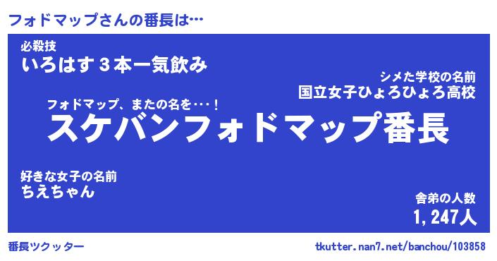 | ヒーロー風カッコイイあだ名 | 『スーパーフォドマップ』『天弓騎士フォ』 |