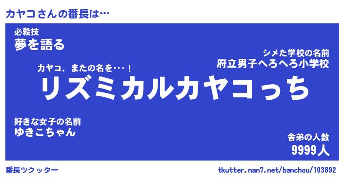 | ファンタジー風あだ名 | 『カヤフェル』『エターナルカヤコー』 |