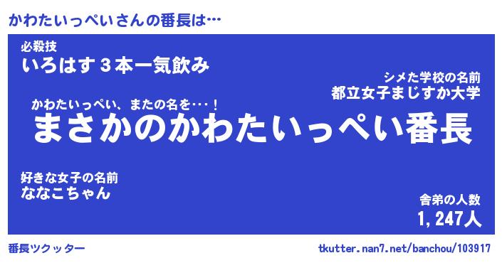 | ポケモン風あだ名 | 『カワチュウ』『カワタダネ』 |