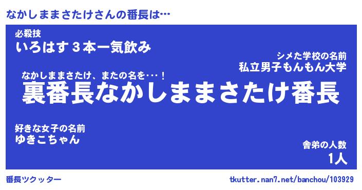 | 肩書あだ名 | 『なかしままさたけ店長』 |