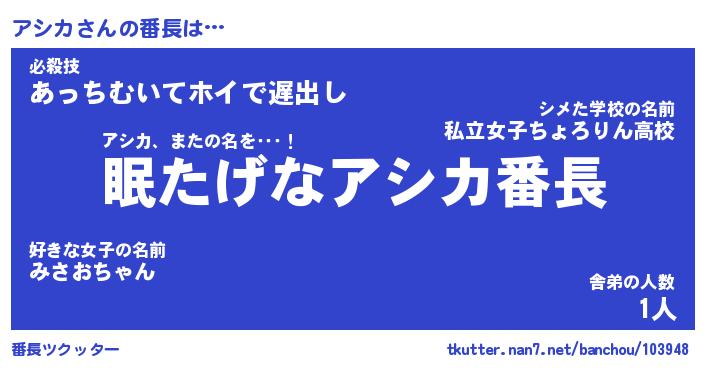 | ファンタジー風あだ名 | 『アシフェル』『エターナルアシカー』 |