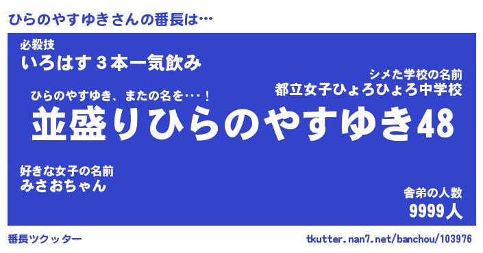| 男性向けラノベタイトル風あだ名 | 『ひらのやすゆきの憂鬱』 |