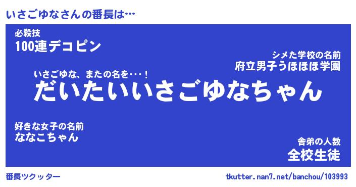 | ポケモン風あだ名 | 『イサチュウ』『イサゴダネ』 |