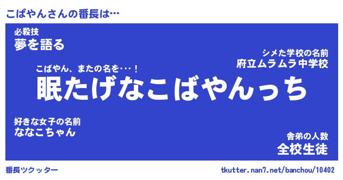 | ヒーロー風カッコイイあだ名 | 『スーパーコバヤン』『銀牙騎士コバ』 |