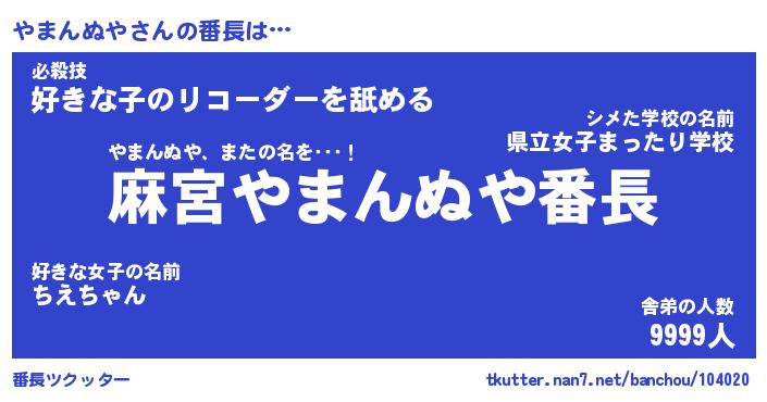 | 欧米人風あだ名 | 『マイケルやまんぬや』 |