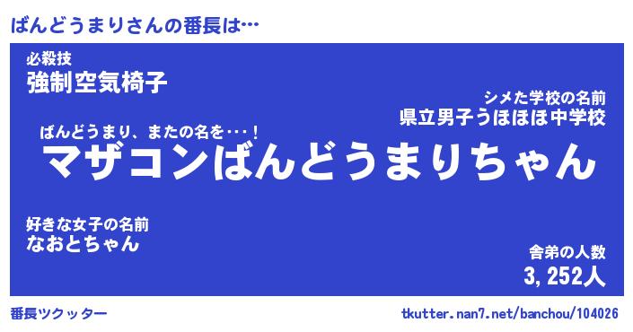 | ヒーロー風カッコイイあだ名 | 『スーパーバンドウマリ』『幻影騎士バン』 |