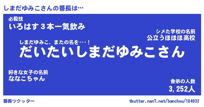 | 肩書あだ名 | 『しまだゆみこ店長』『しまだゆみこ塾長』 |