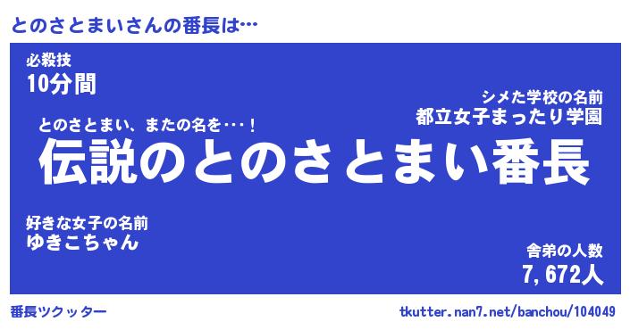 | ヒーロー風カッコイイあだ名 | 『スーパートノサトマイ』『魔戒騎士トノ』 |