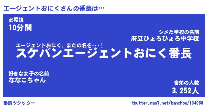 | 意味不明あだ名 | 『ペロリンエージェントおにく』 |