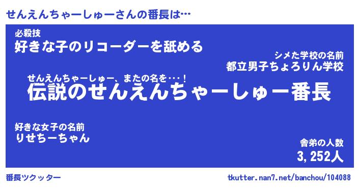 | 伝説のあだ名 | 『伝説の竜騎士せんえんちゃーしゅー』 |