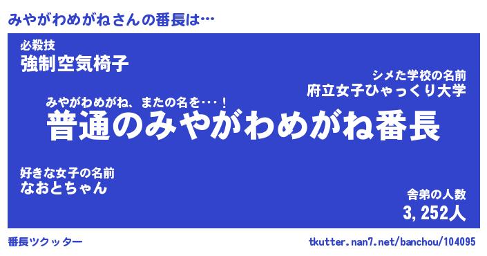 | ポケモン風あだ名 | 『ミヤチュウ』『ミヤガダネ』 |