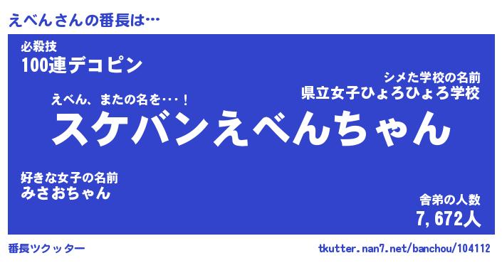 | 意味不明あだ名 | 『ペロリンえべん』『えべんフォーエバー』 |
