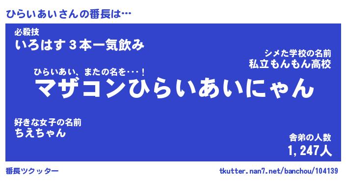 | ヒーロー風カッコイイあだ名 | 『スーパーヒライアイ』『銀牙騎士ヒラ』 |
