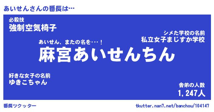 | 肩書あだ名 | 『あいせん店長』『あいせん国家主席』 |
