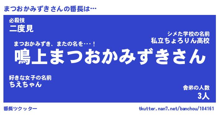 | 2回繰り返すあだ名 | 『まつまつ』『ままつつ』『ぬるぬる』 |