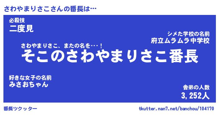 | ピコ太郎風あだ名 | 『サコ四郎』『ピサ六郎』『サワ史郎』 |