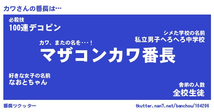 | ヘコむあだ名 | 『カワにゅー』『つくし』『カワ太郎』 |