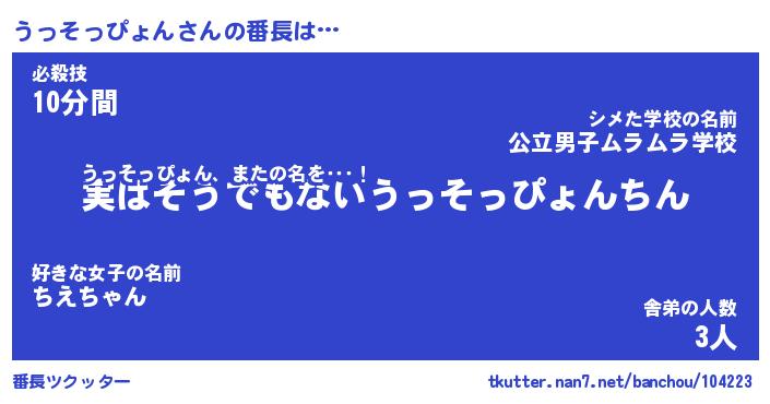 | ピコ太郎風あだ名 | 『ウコ史郎』『ピウ十郎』『ウッ二郎』 |