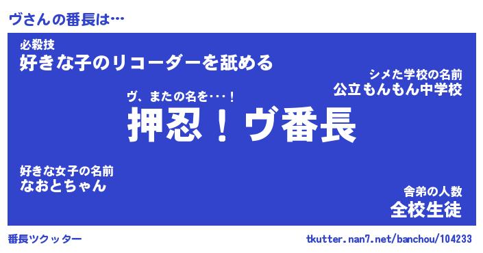 | 肩書あだ名 | 『ヴ社長』『ヴ国家主席』『ヴ班長』 |