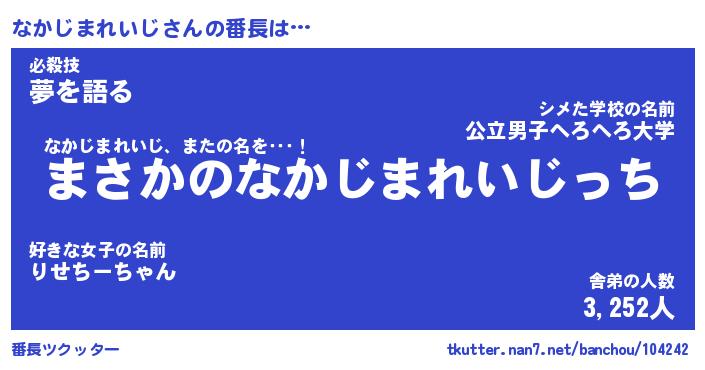 | 男性向けラノベタイトル風あだ名 | 『なかじまれいじの憂鬱』 |