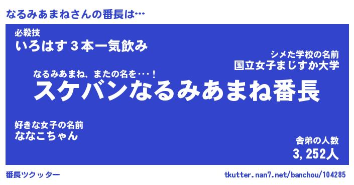 | 肩書あだ名 | 『なるみあまね店長』『なるみあまね担任』 |