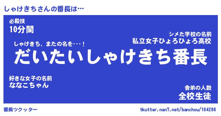 | ヒーロー風カッコイイあだ名 | 『スーパーシャケキチ』『暗黒騎士シャ』 |