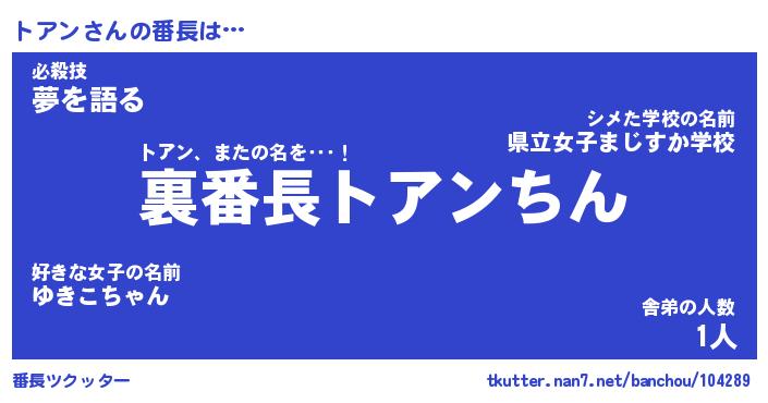 | 意味不明あだ名 | 『ペロリントアン』『トアンフォーエバー』 |