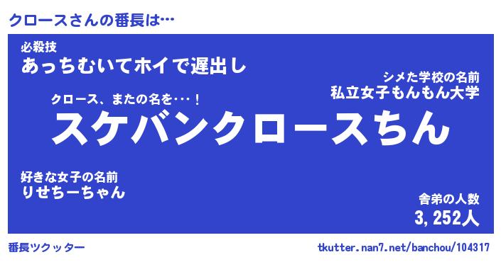 | 2回繰り返すあだ名 | 『クロクロ』『ククロロ』『ねとねと』 |