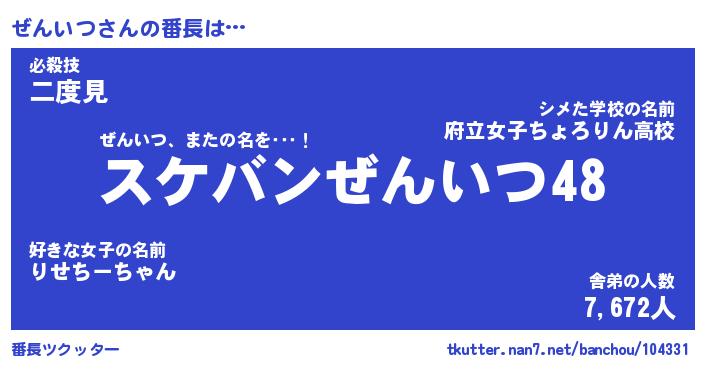 | 意味不明あだ名 | 『ペロリンぜんいつ』『永久保存ぜんいつ』 |