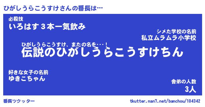| 意味不明あだ名 | 『ペロリンひがしうらこうすけ』 |