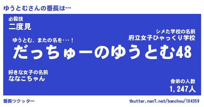 | 意味不明あだ名 | 『ペロリンゆうとむ』『永久保存ゆうとむ』 |