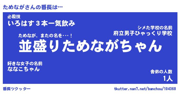 | 肩書あだ名 | 『ためなが御曹司』『ためなが大統領』 |