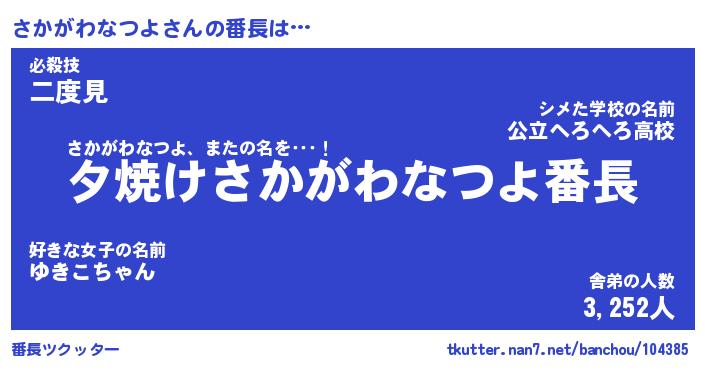 | 伝説のあだ名 | 『封印されしスナイパーさかがわなつよ』 |