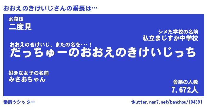 | ツイッター | おおえのきけいじさんのツイッターID『konnyaku_star』 |