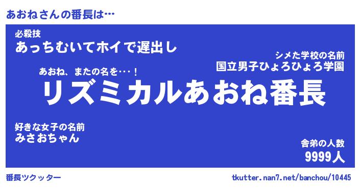 | 肩書あだ名 | 『あおね店長』『あおね国家主席』 |