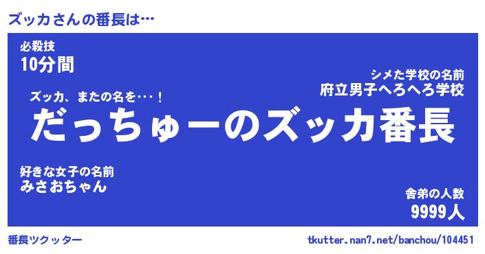 | ポケモン風あだ名 | 『ズッチュウ』『ズッカダネ』 |