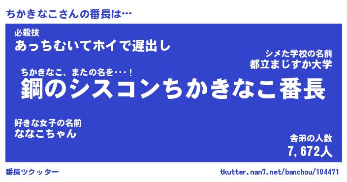 | ファンタジー風あだ名 | 『チカフェル』『エターナルチカキナコー』 |