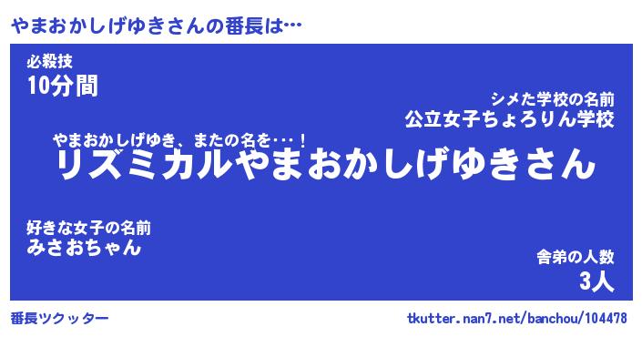 | 女子向けラノベタイトル風あだ名 | 『(仮)やまおかしげゆきのやんごとなき事情』 |