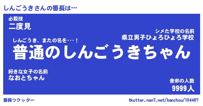 | ヒーロー風カッコイイあだ名 | 『スーパーシンゴウキ』『天弓騎士シン』 |