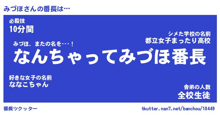 | ヘコむあだ名 | 『みづもー』『豆乳』『みづぷりん』 |