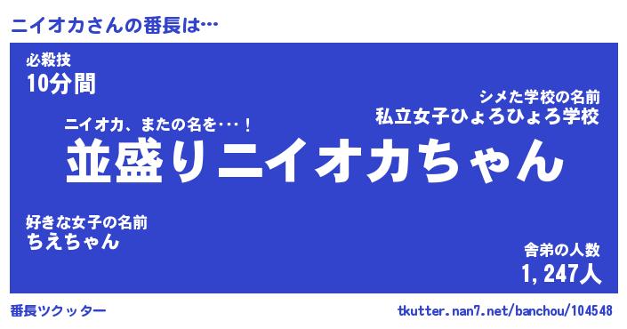 | ヘコむあだ名 | 『ニイもー』『牛乳』『ニイっ子』 |
