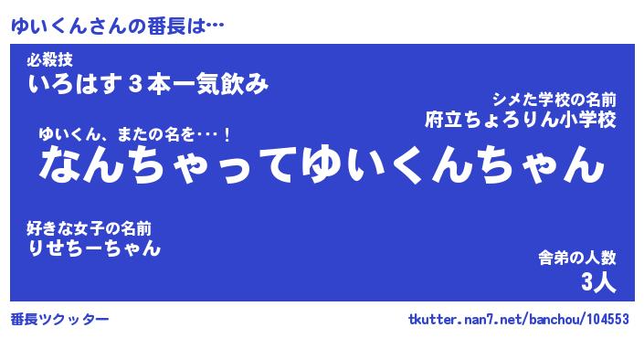 | 伝説のあだ名 | 『伝説のスナイパーゆいくん』 |