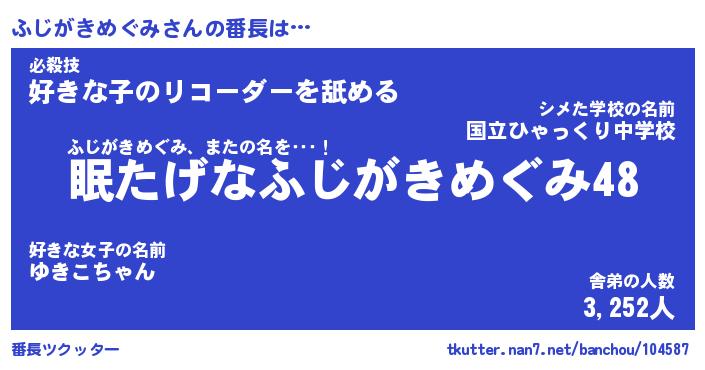 | 2回繰り返すあだ名 | 『ふじふじ』『ふふじじ』『ぬぷぬぷ』 |