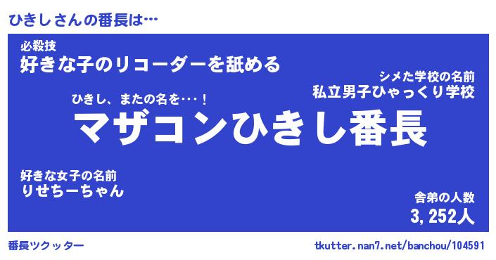 | ファンタジー風あだ名 | 『ヒキフェル』『エターナルヒキシー』 |