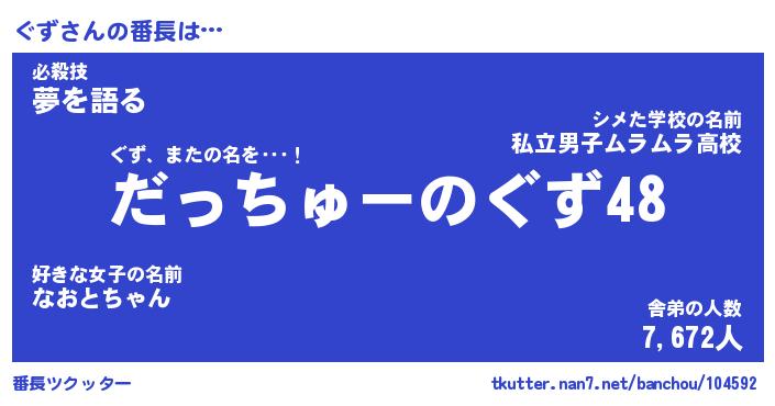 | 伝説のあだ名 | 『伝説のスナイパーぐず』 |