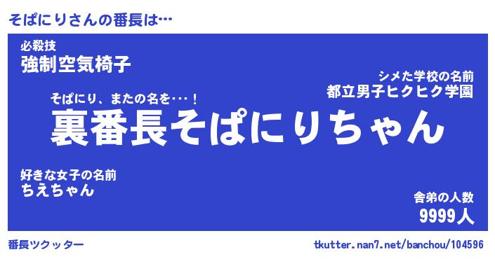 | ヘコむあだ名 | 『そぱにゅー』『つくし』『そぱお』 |