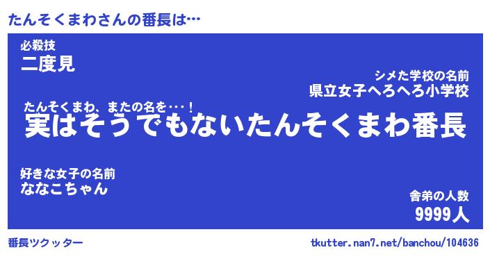 | 2回繰り返すあだ名 | 『たんたん』『たたんん』『うずうず』 |