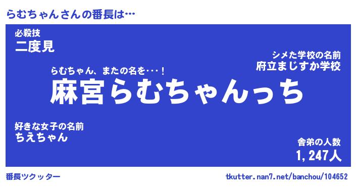 | 2回繰り返すあだ名 | 『らむらむ』『ららむむ』『にたにた』 |